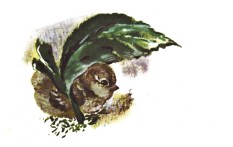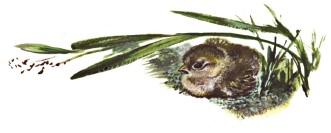 Цыплята и вылезли кто откуда – кто из-под шишки, кто из-под ёлки, один из травки, кто из-за бугорка.