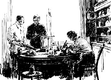 В столовой на круглом столе стояли лабораторные весы в стеклянном футляре. Микроскоп, похожий на зенитную пушку, сверкал отполированными частями. На электрической плите в кухне нагревались колбы с растворами. Толстые банки с притертыми пробками заполнили шкаф для посуды.