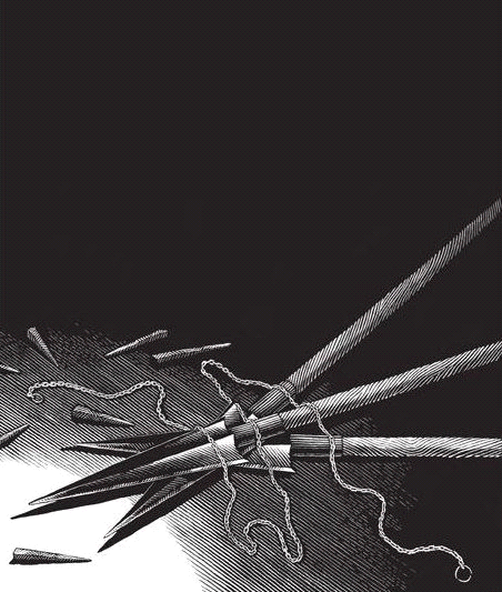В полдень второго дня, один из служащих Шея, сказал мне, что Грималкин хочет поговорить со мной наедине. Я вошел в сарай, в котором находилась кузница, где она работала. Боясь потревожить её сосредоточенность, я молча стоят в углу и наблюдал как она наносила серебро на копье. На ней были толстые кожаные перчатки, чтобы защитить свою кожу от железа и серебра. Длинные, острые копья были покрыты по спирали, тонким слоем серебра. Это был последний из четырех; гвозди уже были готовы.