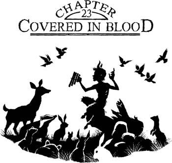 Я подумал, что это вряд ли будет кролик или заяц. Коготь, Кровь и Кость всегда были послушными собаками, и всегда выполняли мои команды, не смотря на самые сильные запахи, которые чуяли. Что с ними случилось? В то время, когда я достиг деревьев, собаки уже углубились далеко в лес. Я слышал, как их лай становиться всё тише и тише. Раздосадованный, я перешел на шаг. Я сразу заметил, что под сенью свежих зеленых листьев слишком тихо. Ветер утих, птицы не пели. Ничто не двигалось. А потом я услышал звук — далекую мелодию флейты. Я слышал эту музыку прежде. Это был Пан!