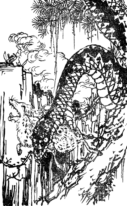 Ведь пора бы разузнать о судьбе его братьев. Какое-то время они карабкались и спускались по горам, проталкивались и скатывались через заросли запущенного леса. Ни малейших признаков потенциальной добычи на глаза не попадалось. Юношам на самом деле не везло. Ничего не оставалось, кроме как повернуть к дому. Они уже решили было это сделать, как услышали крик оленя. С надеждой посмотрев в направлении, откуда доносился этот крик, они ничего не увидели. Снова донесся звук «кии, кии», но все равно его источника видно не было. Дайхатиро высказал свое сомнение: «Такое впечатление, что звук доносится из кроны деревьев, но олени не умеют летать». Они осторожно двинулись на звук. И тут он раздался практически над их головами. Взглянув наверх, самураи, к своему изумлению, увидели огромную змею, [18] кольцами обвивавшую мощный ствол хэби мацу. Змея схватила оленя за задние ноги, наполовину его проглотила и начала переваривать, а несчастное животное в ходе этого противоестественного процесса издавало слабые звуки. Огромные узлы дерева, напоминавшие кольца змеи, казались как бы ожившими. Хёсукэ натянул тетиву лука со стрелой. Дзинь! И стрела вонзилась в левый глаз ужасного пресмыкающегося. Вторая стрела ударила ее в глотку и пробила гада насквозь. Смертоносные кольца чудовища стали медленно разматываться. Выпустив оленя, змея спустилась со ствола дерева и, яростно сверкая оставшимся глазом, стала приближаться к братьям, мужественно стоявшим не шевелясь. Хёсукэ нарушил молчание: «Дайхатиро, готовь свой меч». И вынул третью стрелу. Тщательно прицелившись, он отпустил тетиву. Эта стрела вошла громадному пресмыкающемуся прямо в правый глаз. Через мгновение ее голова лежала на земле. Дайхатиро пнул все еще извивающееся тело. «Знатный выстрел, брат. Какая насмешка над Котаро. Бьюсь об заклад, он ничего не добыл и ушел домой ни с чем. Ты посмотри! Уже наступила ночь. Давай заберем с собой оленя и эту голову. Разве можно оставлять такую добычу?» Хёсукэ ему ответил: «Да, больше нам не на что рассчитывать. Но так получается, что, скорее всего, придется провести ночь в лесу, так как до Хираи нам не добраться. На деревьях растут факелы, но их еще надо зажигать. Тем не менее ночь можно провести в каком-нибудь шалаше охотника».