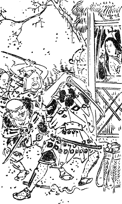 С грохотом распахнулись двери алтаря. Из него наружу вышел Косиро. При его появлении разбойники в ужасе повскакали с мест, чтобы броситься наутек, но от навалившегося на них страха не могли даже пошевелиться. Разве крупной, почти двухметровой фигурой, увенчанной рыжими волосами головой, изборожденным морщинами лицом он не походил на самого бога в гневе?! Разбойники распростерлись в приветствии у подножия алтаря. «Ничего не бойтесь! – промолвил Косиро. – Ваши добрые высказывания по поводу дома Огури услышал Мито-но Косиро Тамэхира. Соизвольте принять благодарность. Только вот, по правде говоря, не дело, пользуясь войной, грабить монастыри и путников.