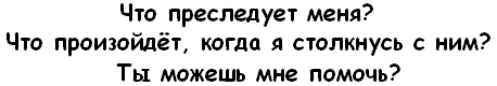 Было слишком темно, чтобы Агнесса могла читать по моим губам, поэтому пришлось подышать на зеркало и написать вопрос. Я хотела узнать, что за существо преследует меня.