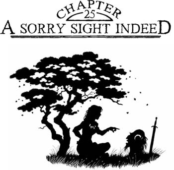 У меня больше не было яблока или шипов розы, вместо этого я использовала клубок крапивы и ветки боярышника, запихав ему в рот со всей силы. Затем, с торжественной улыбкой засунула голову обратно в мешок.