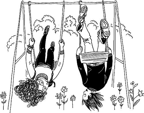 Мы подходим к качелям, и я вспоминаю, сколько раз уже здесь бывала. Сначала с мамой – от этих мыслей у меня щемит в груди, ведь мне и сейчас ее очень не хватает и я всегда о ней думаю. Потом я была здесь с папой – однажды он так сильно меня раскачал, что я чуть не сделала «солнышко». Теперь папа раскачивает Цыпу. Один раз Цыпа вылетел с сиденья и чуть не разбился. Мы с Магдой и Надин тоже тусуемся летом в парке – часами обсуждаем шмотки, косметику, прически, рок-звезд и парней.