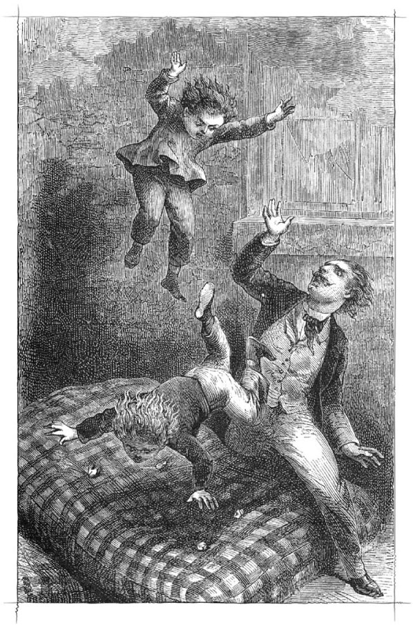 Он так их уговаривал, так толкал, так часто повторял одно и то же приказание, что заставил наконец принести шесть матрацев и разложил их на земле под окном чердака, на котором находились несчастные Морис и Адольф, окруженные дымом и пламенем.