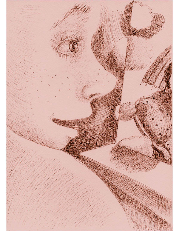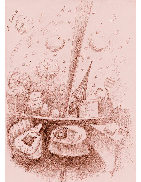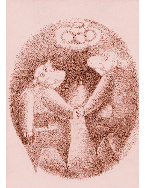 Мусорщик пятится к двери в комнату, он вовсе не хочет видеть ее так явно, так близко. И не хочет видеть, как из-за ее спины выступает гигантской тенью еще кто-то. Он огромный, как лось, он кажется неведомым лосем, страшным, совсем не таким, какими бывают лоси на связанных носках и глиняных чашках.