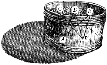 Рассмотрим (в период сбора винограда) наполовину наполненный раздавленным виноградом чан; в дне последнего проделаны одно или два отверстия А и В (рис. 39), через которые может вытекать виноградный сок, содержащийся в чане. Поскольку нет пустоты в природе, как это признают почти все философы, и поскольку во всех телах, замечаемых нами всюду, имеются поры, что достаточно ясно доказывается опытом, постольку необходимо, чтобы эти поры были заполнены материей, весьма разреженной и текучей, которая непрерывно распространяется от небесных светил до нас. Если разреженную материю сравнить с виноградным соком, наполняющим чан, а менее жидкие или более грубые части воздуха и других прозрачных тел сравнить с гроздьями винограда, расположенными между ними, то можно легко понять, что поскольку часть вина, находящаяся, например, около точки С, стремится спуститься по прямой линии через отверстие А, как только последнее открывается, и одновременно через отверстие В, постольку другая часть, которая помещается около D и Е, стремится в то же самое время спуститься через эти два отверстия, не мешая друг другу и не встречая сопротивления со стороны гроздей, имеющихся в чане, несмотря на то, что эти грозди, поддерживающие друг друга, совершенно не стремятся спуститься через А и В вместе с соком, вопреки тому, что они могут быть передвинуты разными способами давильщиками винограда.