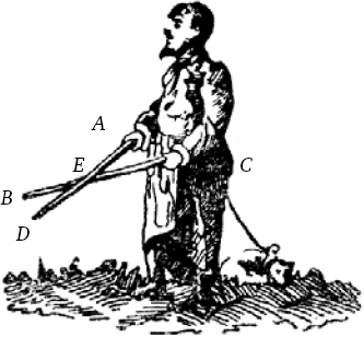 Оценка расстояния зависит не от расположения тех или иных изображений предметов, а прежде всего от формы хрусталика; как уже говорилось, форма хрусталика должна быть несколько иной при рассматривании близких предметов, чем далеких, и по мере того, как мы ее меняем, чтобы приспособиться к расстояниям, отделяющим нас от предметов, одновременно меняется некая часть нашего мозга таким образом, который установлен природой для того, чтобы наша душа могла оценить данное расстояние; это обычно происходит без всякого размышления с нашей стороны; вместе с тем, когда мы держим в руке какое-нибудь тело, то придаем ей форму, соответствующую величине и фигуре тела, и ощущаем его подобным способом, причем нет надобности думать о каких бы то ни было движениях. Кроме того, мы оцениваем расстояние благодаря относительному расположению глаз; точно так же и наш слепой, держащий две палки АЕ и CE, о длине которых он не имеет представления, но знает только интервал, отделяющий его две руки А и С, и величину углов ACE и САЕ, может отсюда как бы с помощью естественной геометрии понять, где находится точка Е; таким же образом, если оба глаза RST и rst (рис. 46) повернуты к точке Х, величины отрезка Ss и двух углов XSs и XsS позволят нам понять, где помещается точка X. Мы можем это уяснить и с помощью лишь одного глаза, меняя его положение следующим образом: сначала ставим его в точку S и направляем в сторону X, а затем помещаем в s. Этого достаточно, чтобы величины отрезка Ss и двух углов XSs и XsS встретились вместе в нашем воображении и дали нам возможность оценить расстояние до точки X. Это достигается работой мысли, которая, представляя собой лишь простое воображение, тем не менее напоминает размышления, совершенно подобные рассуждениям, совершаемым землемерами, когда с помощью двух разных пунктов они измеряют расстояния до недоступных мест. Помимо того, существует другой способ определения расстояния, базирующийся на показаниях резкости или нерезкости изображения и вместе с тем силы или слабости света. Когда мы внимательно рассматриваем точку Х (рис. 47), то видим, что лучи, исходящие из предметов 10 и 12, не собираются столь точно в точках R и Т на дне нашего глаза, как если бы упомянутые предметы находились в точках V и Y; отсюда мы заключаем, что они дальше или ближе от нас, чем точка X. Далее, поскольку свет, устремляющийся к нашему глазу от предмета 10, более сильный, чем если бы он исходил от того же предмета, но помещенного в точку V, постольку можно установить, что предмет 10 располагается ближе; с другой стороны, так как свет, идущий из точки 12, более слабый, чем если бы он шел из точки Y, мы делаем вывод о том, что предмет 11 находится дальше. Наконец, если у нас уже создалось некоторое представление о величине предмета, его расположении, различиях в его форме и окраске или хотя бы о силе света, исходящего от него, то указанное обстоятельство может нам служить не столько для того, чтобы видеть, сколько для того, чтобы вообразить расстояние. Когда мы смотрим издали на различные тела, которые привыкли видеть вблизи и о размерах которых у нас, следовательно, имеется известное понятие, то судим гораздо лучше о расстоянии до них, чем если бы мы не представляли их величины; при обозрении горы, освещенной солнцем и находящейся за лесом в тени, только расположение леса позволяет судить о том, что о