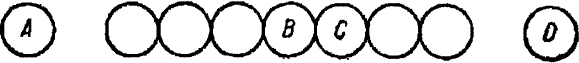 Это может быть доказано на ряде одинаковых шаров из твердого вещества, о которых говорилось выше; если одновременно ударить по ряду с двух противоположных концов равными шарами А и D (рис. 54), то каждый из них отскочит с той же скоростью, с какой он шел, а ряд весь останется на месте, хотя движение и прошло по всей длине его в том и другом направлениях. И если эти противоположно направленные движения встречаются в среднем шаре В или в каком-либо другом шаре С, то соответствующий шар должен сжаться и выпрямиться в две стороны и таким образом в одно и то же мгновение послужить для передачи этих двух движений.