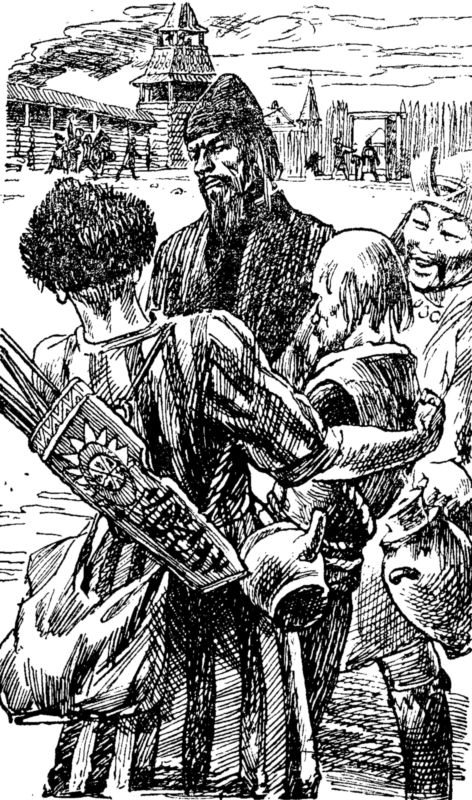Ошибся кузнец, будто татары наедятся и отдыхать станут. Едва за мостом заглох стук колес его телеги, а сторож моста Овсеюшка убрался в свою будку, по городу с посвистом и визгом стали носиться всадники. Стегали зазевавшихся плетьми, на разгоряченных коней из подворотен злобно лаяли собаки, пыль, поднятая копытами, застлала улицы. Татары останавливались у слободских изб, и оттуда несся плач женщин, крики детей, сдержанная ругань мужчин. Мужчины, защищая родные очаги, домочадцев, падали под ударами татарских сабель. Вскоре стало ясно: татары заглядывают в каждый двор, переписывают людей, их пожитки, — отныне они будут брать дань с каждого двора, с каждого человека, и требуют от всего и всех десятую часть.