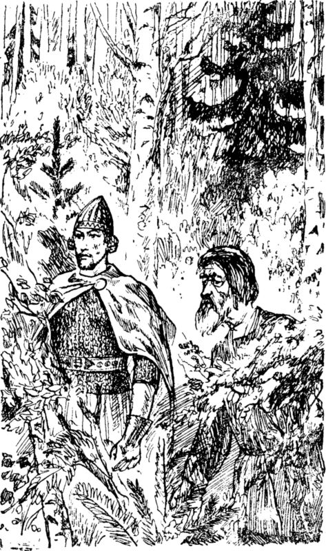 Константин спешился, за ним последовали остальные. По узкой, еле заметной тропе Окоренок вел в поводу княжеского коня. Князь внимательно приглядывался — конному тут ходу не было: низко свисали толстые лапы елей, тропа петляла, надо было смотреть под ноги, чтобы не споткнуться о выступавшие корни неохватных деревьев.