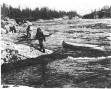 Лесом поверху перенесли только багаж. Каноэ провели порожняком на бечеве по берегу. За