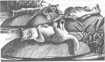 – Они думают, что мы потеряли зубы и когти! Снова зашуршали заросли осоки, в лагерь вбежали Пачкун и Заряница. За ними семенил Щукозуб, неся в пасти жирного карпа. Бросив рыбу на песок, Щукозуб поискал глазами предводителя.