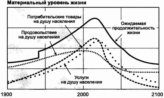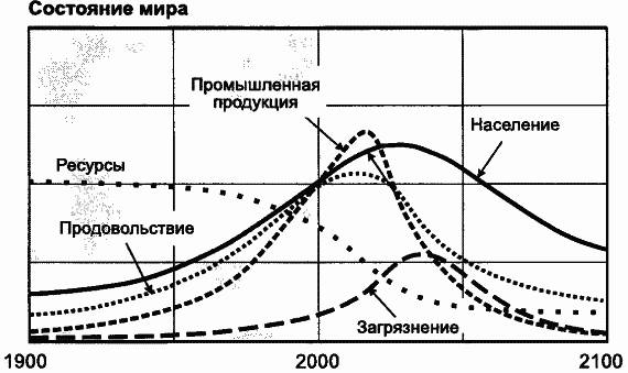 В локальном масштабе выход за пределы и катастрофа уже наблюдались не раз: процессы опустынивания, истощения минеральных ресурсов и фунтовых вод, отравление почвы сельскохозяйственных угодий или лесов стойкими токсичными загрязнителями, исчезновение видов животных и растений. Брошенные фермы, опустевшие шахтерские поселки, являются признаком такого поведения системы. В глобальном масштабе выход за пределы и катастрофа могут означать нарушение основных природных циклов, регулирующих климат, очищающих воду и воздух, воспроизводящих биомассу, поддерживающих биологическое разнообразие, преобразующих отходы одних природных процессов в питательные вещества для других. Когда мы впервые опубликовали наши результате в 1972 г., большинство людей были убеждены, что в глобальном масштабе человек никогда не сможет нанести природным процессам серьезный вред. А сейчас примеры такого разрушения попали в заголовки газет и стали предметом обсуждения на встречах ученых и при проведении международных переговоров[150].