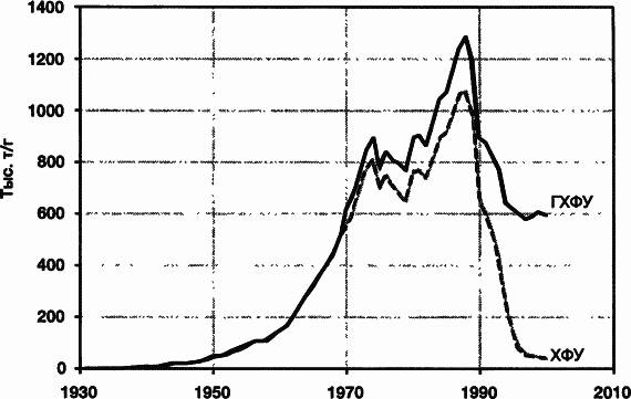Рис. 5.1. Мировое производство хлорфторуглеводородов