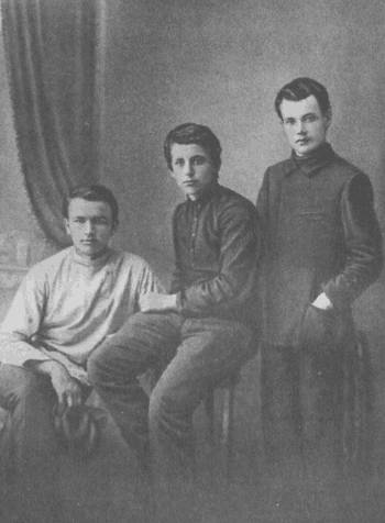 Е. Л. Шварц (в центре) с друзьями юности Ю. В. Соколовым (слева) и Е. Я. Фреем (справа). 1912 г. Майкоп.