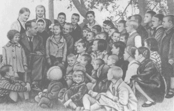 Е. Л. Шварц с детьми, эвакуированными из Ленинграда 1942 г. Оричи.