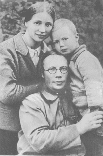 Е. Л. Шварц с дочерью Н. Е. Крыжановской и внуками Андреем и Машей