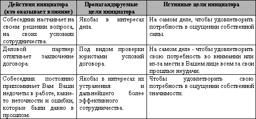Всякое действие собеседника, с помощью которого он скрытно пытается подвести партнера к нужной ему цели, является манипулятивным.