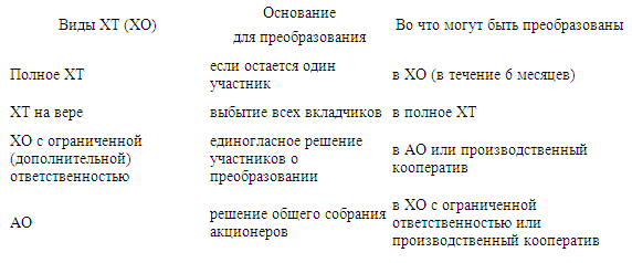ПРЕОБРАЗОВАНИЕ ХОЗЯЙСТВЕННЫХ ТОВАРИЩЕСТВ (ХОЗЯЙСТВЕННЫХ ОБЩЕСТВ)