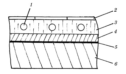 Армирование стяжки для теплого пола:1 – хомут; 2 – покрытие пола; 3 – стяжка; 4 – утеплитель; 5 – гидроизоляция; 6 – плита