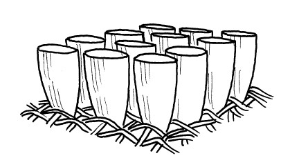 По технике производства различают тафтинговый, тканый и иглопробивной ковролин. Нити тафтингового ковролина прикреплены к основанию с помощью клея (рис. 48), тогда как в тканом нити переплетены с сетчатой джутовой основой (рис. 49). В иглопробивном ковролине нити с помощью иголок вбиты в резиновую основу. Этот вид материала является самым износостойким и, следовательно, самым дорогостоящим.