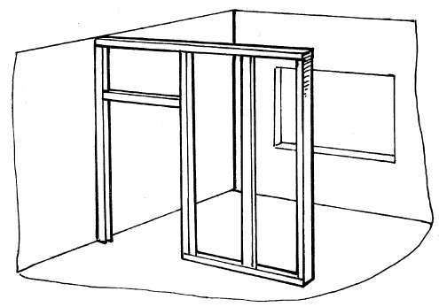 Профили следует соединить между собой с помощью шурупов-саморезов. Во время монтажа каркаса устанавливаются дверные коробки. Стоечные профили, которые ограничивают дверной проем, монтируются на всю высоту перегородки. Стойку, на которой находятся дверные петли, необходимо по всей длине усилить деревянным бруском такого же сечения или соединить шурупами с одноразмерным направляющим профилем.