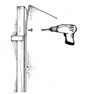 Направляющие профили следует установить по разметке и прикрепить к полу с помощью дюбелей. Для этого сквозь профиль в основание пола перфоратором нужно просверлить отверстия. Для деревянного основания применяются шурупы по дереву, и в этом случае сверлить пол не потребуется. Далее собирают верхние направляющие профили, выравнивают их с помощью уровня и крепят дюбелями. Направляющие фиксируются на стенах, полу и потолку с шагом не более 1 м (рис. 76).