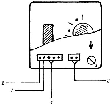 Рис. 9. Подключение терморегулятора: 1 – фаза; 2 – ноль; 3 – датчик температуры пола; 4 – кабель нагревательный
