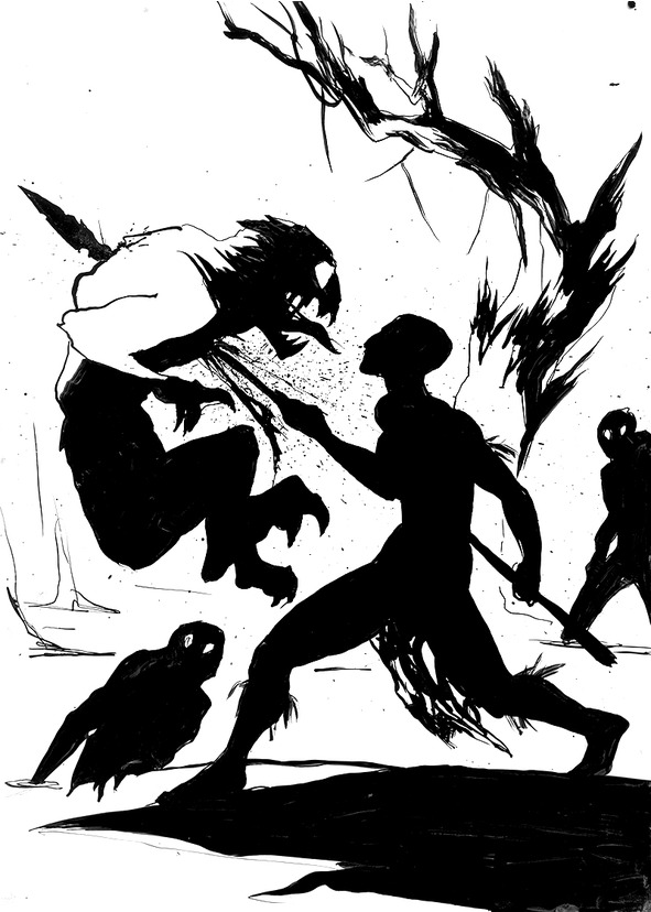Два топтуна окружили Кирки с разных сторон. Она оказалась по пояс в мутной воде и суматошно озиралась по сторонам, готовая отразить атаку любой, приблизившейся на расстояние удара, твари. Длинное, заостренное копьё придавало ей уверенности.