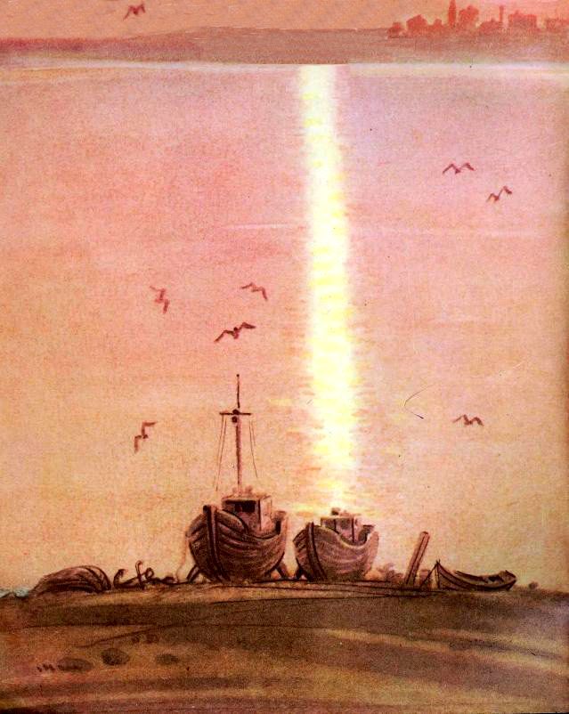 Лялик и сам видит, что это дед Павел. Чайки крикливой стаей летят за лодкой, и ему тоже хочется к дедушке.