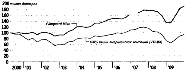 В индекс «Vanguard Mix» входят 33 % активов с фиксированной доходностью (VBMFX), 27 % акций американских компаний (VTSMX), 14 % акций рынков развитых стран (VDMIX), 14 % акций рынков развивающихся стран (VEIEX), 12 % паев инвестиционных трастов недвижимости (VGSIX).