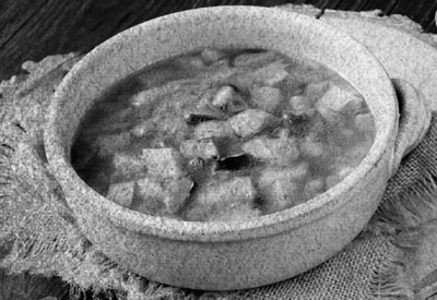 Варить в течение 3–5 минут. Добавить измельченный репчатый лук. Варить в течение 1015 минут. Добавить овсяные хлопья. Поперчить. Посолить. Варить в течение 5–7 минут. Перед подачей готовый суп посыпать мелко порезанной зеленью.