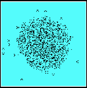 Однако рано я радовался. Двумерный образ бензинового пятна на воде был не так уж прост, хотя и не дотягивал до фрактала. Внешний, самый широкий пояс фиолетового цвета выпускал ручейки-щупальца в окружающую пустоту. За фиолетовым, повторяя его контуры, шли сине-зеленый и оранжевый, вложенные один в другой. Внутри оранжевого опять появлялся фиолетовый, но на этом повторение заканчивалось — в самом центре бензиновой радуги находилось пятнышко такой же пустоты, как и снаружи. Имелось еще одно существенное отличие от обычного пятна бензина: эта штуковина была словно живая. Ручейки несли какие-то белые щепки от периферии к внутренним слоям радужной амебы и обратно. Время от времени амеба слегка перестраивалась, выкидывая новые щупальца или подтягиваясь в сторону одного из уже вытянутых. Выглядело довольно тошнотворно.