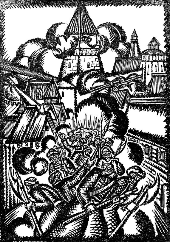 Можно сказать, из-за него, Фомина, и поспешил уйти царев брат князь Шуйский из Калуги. Как только начали подступать к городу войска Болотникова, кинулся Фомин с ватагой калужан на городскую башню и отбил ее у ратников. А на башне три пушки были. Вот и повел пальбу Фомин с товарищами из тех пушек. Тут и посадские начали из ружей бить по ошалевшим от нежданной стрельбы ратникам. Понял князь Шуйский, надобно поскорей оставлять город, не то и вовсе ног не унесешь.