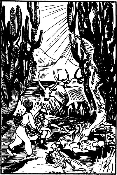 Когда мы взобрались наверх, подул сильный ветер, дождь прекратился, и через час над степью мерцало холодное звездное небо. На берегу коронго мы нашли группу деревьев; я выудил из воды мчавшиеся мимо кусты и, настругав лучины и выковыряв из оставшихся патронов порох, выстрелом зажег костер. Мы просидели у костра до утра, ели шоколад англичанина и пили мой чай, курили и рассказывали всякую всячину друг другу, убеждаясь все больше, что у нас одинаковые мысли и чувства, одинаковые интересы и радости. И мы решили объединиться и сообща делать то, что привело нас в степь Мешай: наблюдать африканский мир животных, рисовать и фотографировать. Таким образом я познакомился с Гордоном Домби.