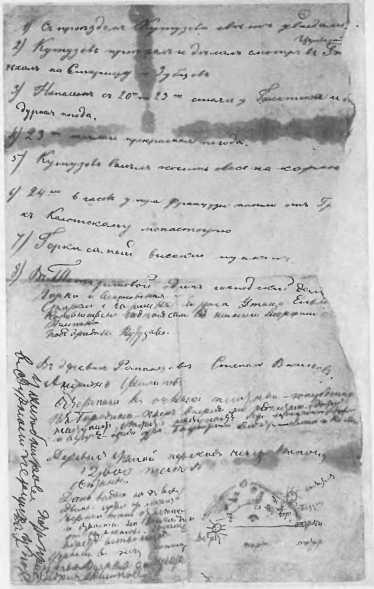 Записи и чертеж, сделанные на поле Бородинского сражения.