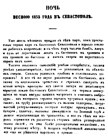 Первая страница рассказа «Севастополь в мае» (в журнале «Современник»).