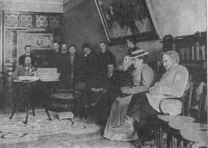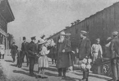 В деревню Ясная Поляна на открытие народной библиотеки. 1910 г.