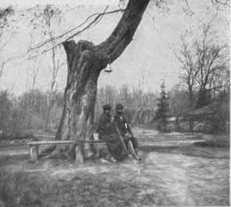 Л. Н. Толстой и Д. П. Маковицкий с крестьянскими детьми у «дерева бедных».