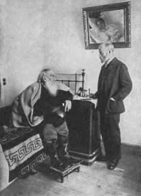 Л. Н. Толстой и Т. П. Маковицкии. Ясная Поляна, 1909 г.