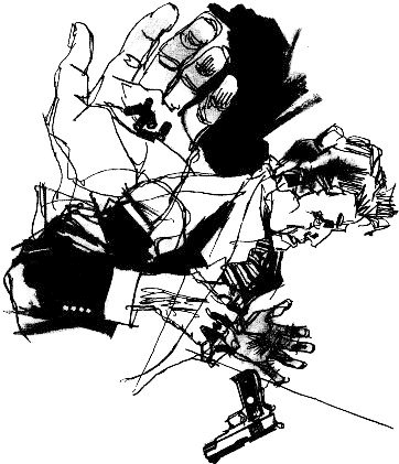 Бьёрн Форсберг стал за столом, оперся на него левой рукой, наклонился и правую руку засунул в ящик. Когда он ее вынул, пальцы его сжимали пистолет.