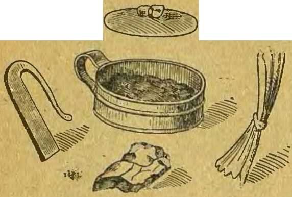 И вряд ли мы добьемся толку, если попробуем заменить их тряпкой, мягкой бумагой или еще чем-нибудь вроде этого. Такие вещества легко заставить тлеть от искры только тогда, когда они хорошо обуглены, а для обугливания ведь нужен опять-таки огонь…