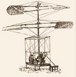 12 июля 1754 года на конференции Петербургской Императорской Академии наук М.В. Ломоносов продемонстрировал в действии изобретенную им аэродромическую машинку с двумя двухлопастными несущими винтами, вращавшимися в противоположные стороны. В качестве привода Ломоносов использовал часовой механизм со спиральной пружиной, которая приводила в движение несущие винты машины. К сожалению, в дошедших до нас материалах нет ни рисунка модели, ни ее размеров: вниманию читателей представляется восстановленный по описанию эскиз аэродромической машинки.