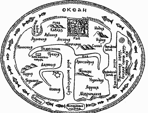 — Земля окружена огромным кольцом Мирового Океана и разделяется на части тремя великими потоками: Геллеспонтом, Средиземным морем, Нилом.