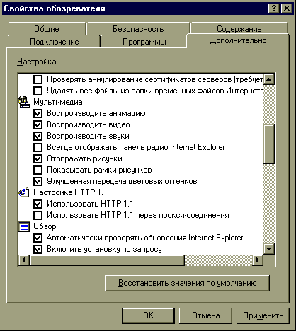 Рис. 3.6. Вкладка Дополнительно диалогового окна Свойства обозревателя