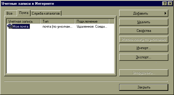 Рис. 2.5. Внешний вид диалогового окна Учетные записи в Интернете