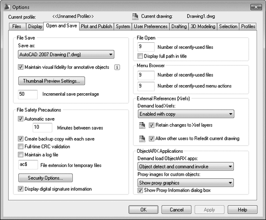 Группы элементов External References (Внешние ссылки) и Object-ARX Applications (Приложения ARX) управляют настройками внешних ссылок и взаимодействием с программами сторонних разработчиков. Значения оптимизированы по умолчанию, поэтому изменять их не стоит.