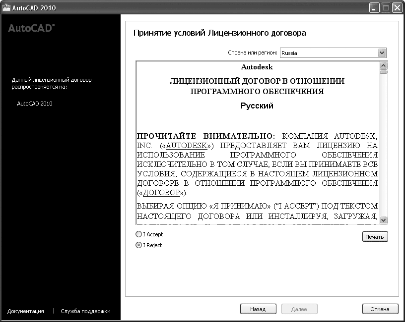 Если вы купили лицензию на использование AutoCAD 2010, то можете выбрать ее тип: Однопользовательская лицензия (Standalone license) или Сетевая лицензия (Network license).